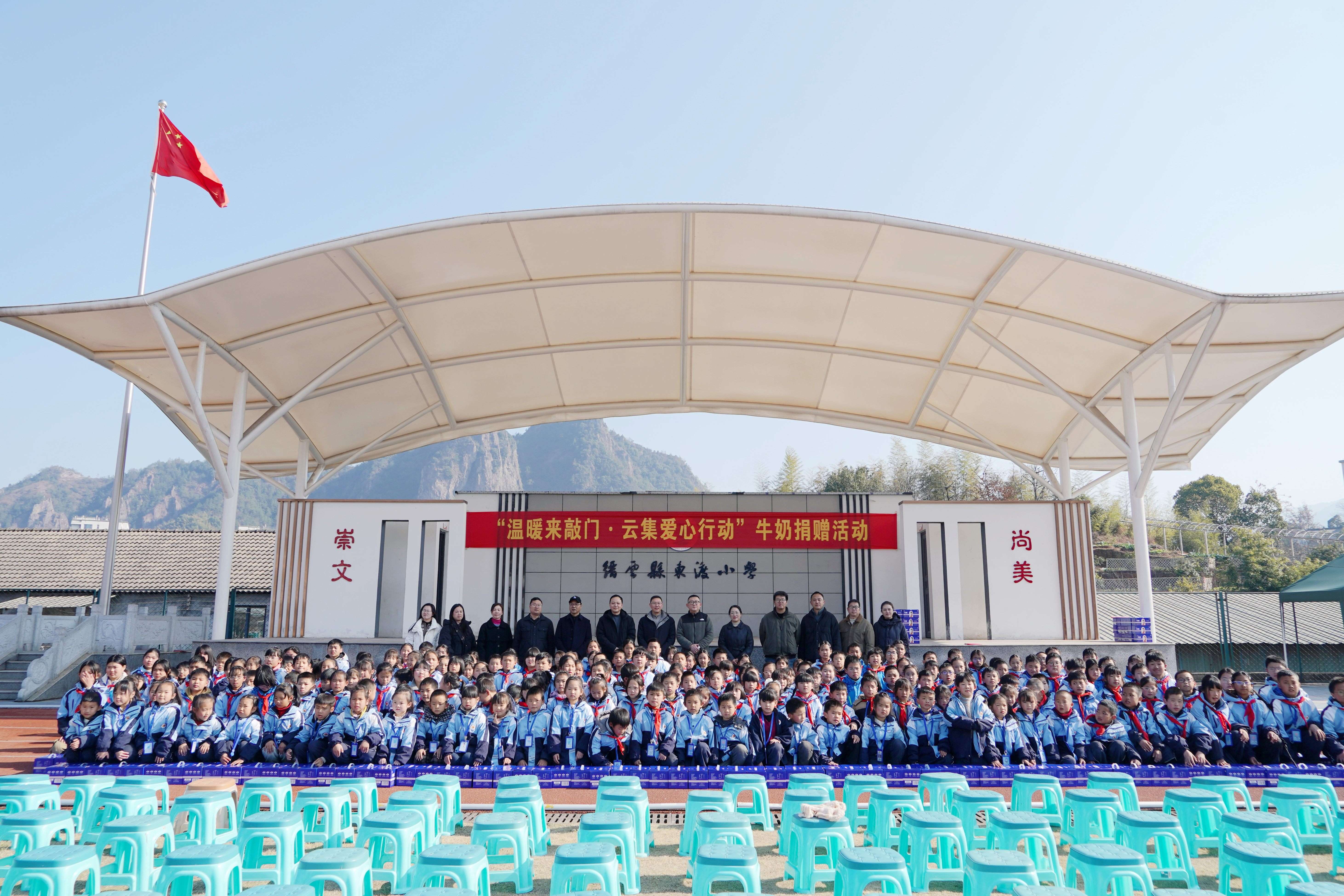 1月7日,全市活动的启动仪式在缙云县东渡小学举行。丽水市关工委专职副主任潘旺峰,云集公共事务经理、公益基金会秘书长洪昇,以及缙云县委组织部、县关工委、东渡镇等单位相关负责人出席活动。200余名学生代表、10名受赠学校代表以及敬老院代表共同见证了这场温暖的爱心传递。孩子们用稚嫩而坚定的声音承诺“好好学习、帮助同学”,那一刻,整个操场都被爱与希望点亮。